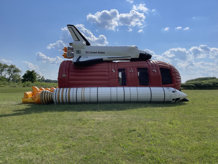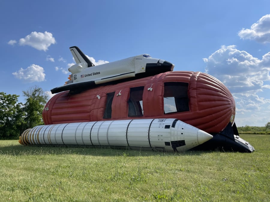 Celebrate America's space missions with this very realistic bounce and slide combo unit! Gather your little explores and "moon bounce" in a very spacious play area with actual NASA photos of the International Space Station missions. This giant inflatable features a dual climb and slide to exit the back side of the unit. Great for corporate events, school festivals, or epic-sized birthday parties!
