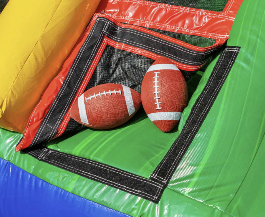 Pee-wee football to Packer Nation...and for everyone in between, fingers on the laces and send a Hail Mary! Challenge your friends or create teams and compete in this tournament-style inflatable football game. This unit is the perfect addition for your party, corporate event, or school festival. An ample supply of footballs are included for your multiplayer football challenge. "White 80- Omaha- Hut- HIKE! Go Blue!"