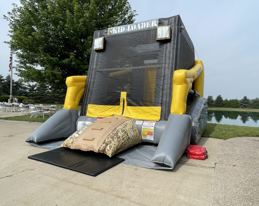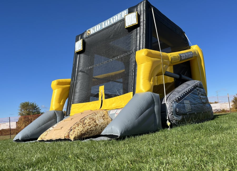 CAUTION! Grab your hard hat and tools because this inflatable is sure to dig up loads of fun! Your construction-themed party can't go wrong with this one-of-a-kind Blue Sky Inflatable bouncer. Your little construction crew will be excited to bounce all day long in this larger-than-life skid loader, party zone ahead!