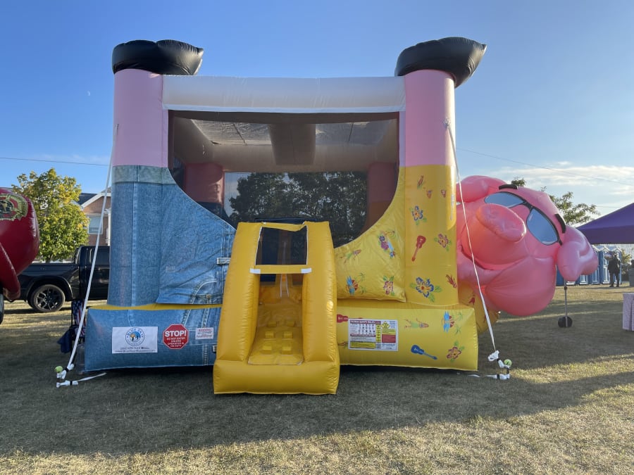 Party Pig Bouncer in a Luau shirt and sunglasses...yes please! ALOHA friends. Fire up the grill & pass mommy a Mai Tai. Blue Sky Inflatables is bringing you a Hawaiian Pig Bouncer to your party. This simple bounce house is sure to keep the Hawaiian babes bouncing all day long. Need more? Lets add the