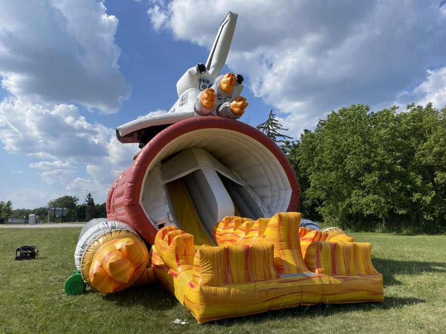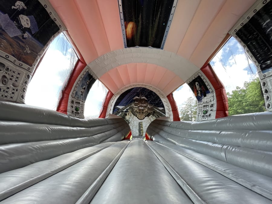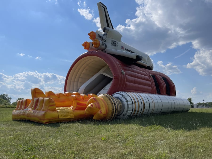 Celebrate America's space missions with this very realistic bounce and slide combo unit! Gather your little explores and "moon bounce" in a very spacious play area with actual NASA photos of the International Space Station missions. This giant inflatable features a dual climb and slide to exit the back side of the unit. Great for corporate events, school festivals, or epic-sized birthday parties!
