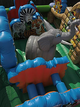 Get your little one ready to party like an animal in this toddler-friendly bounce house! This animal-themed inflatable features an impressive design with digital print both inside and out. Plenty of bouncing areas and 3-D animal pop-ups! Room for up to 6 kids and excellent for both indoor/outdoor venues.