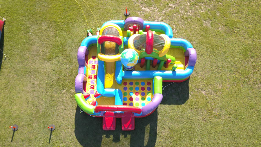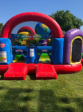 Challenge your little explores as we climb, crawl, jump, squeeze and twist your way through a colorful Wacky World! This obstacle course bounce house combo is suitable for indoor/outdoor venues and recommended for children ages 3-13 years old.
