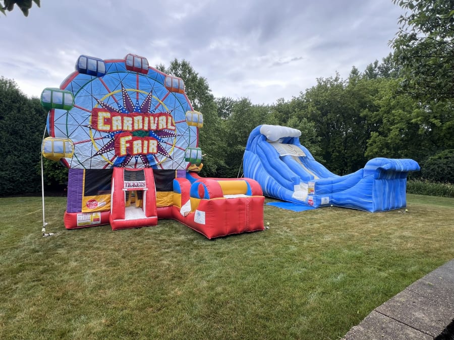 Elevate your party with a one of a kind Blue Sky Inflatables Carnival Bounce and Slide Combo! This unit can be wet or dry for hours of entertainment. Include some of your own DIY carnival games and let the kids have fun! Pair this bounce with Blue Sky concessions and your party planning is complete!