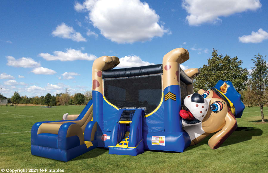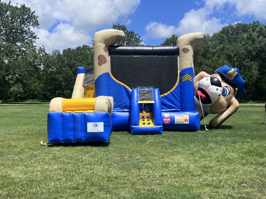 Calling all Pups! Calling all Pups! We have a K-9 Birthday Party in progress!!!!! This playful Police Dog Belly Bouncer has a large bounce area for up to 6 pups, a climb ladder and super fast slide! Buckle up fam, this unit has the option to be a WET slide. Book now and let the K-9 themed adventure begin because every pup deserves a party as fun as they are.