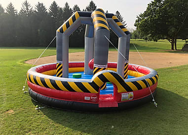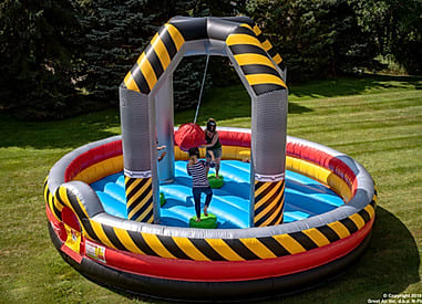 Step into the High Voltage Cage and prepare to be challenged from head to toe. Balance, coordination, strength, and trash-talk are your key to winning this game! You’ll compete to stay on a pedestal while trying to knock down your opponents with a swinging foam boulder. Grab some friends and play till the last man standing.