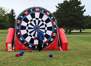 Look no further! Blue Sky Inflatables has your Soccer Dart Board party rental. Perfect for both indoor & outdoor venues, this is a great addition to compliment any Blue Sky bounce house. Bring the whole family together for this fun interactive game.