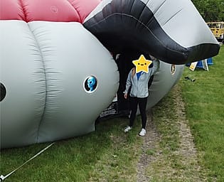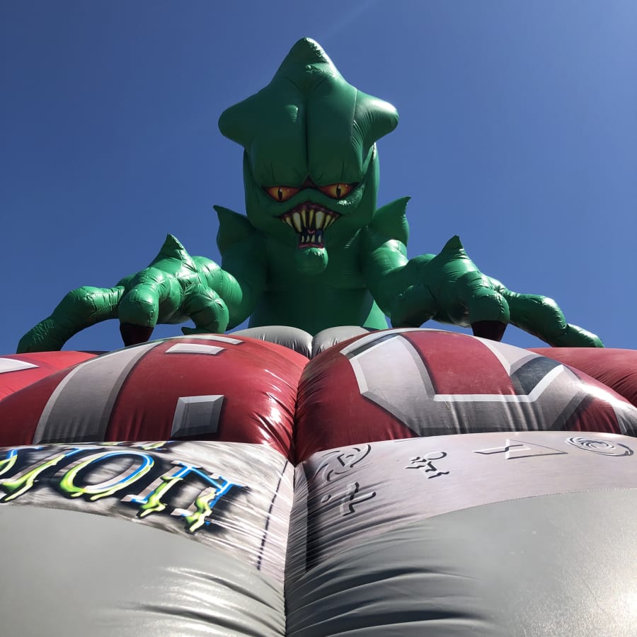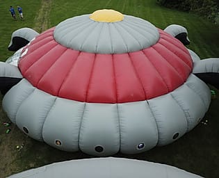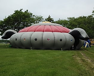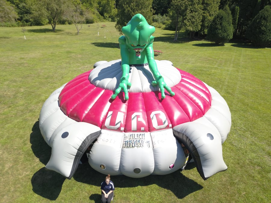Enter if you DARE! This action-packed UFO contains a maze of inflatable walls for your children and adults to explore. For your safety, there are 4 entrance/exit doorways, the hanging walls are not attached to the flooring and the floor is not inflated. Ask us for the option of installing lights and a fog machine (fee applicable) to make this the ULTIMATE Alien Maze EXPERIENCE!