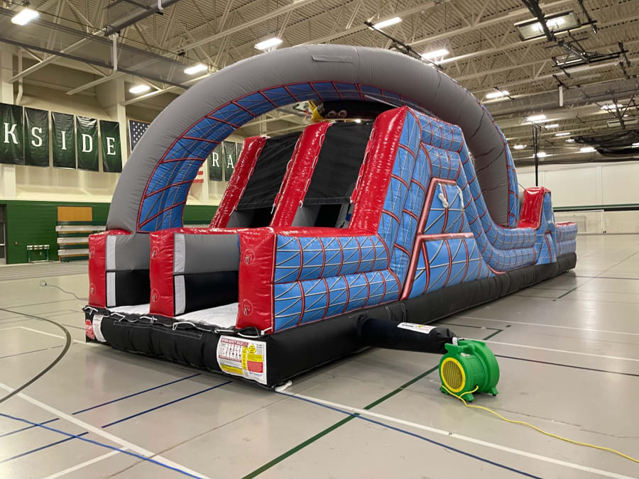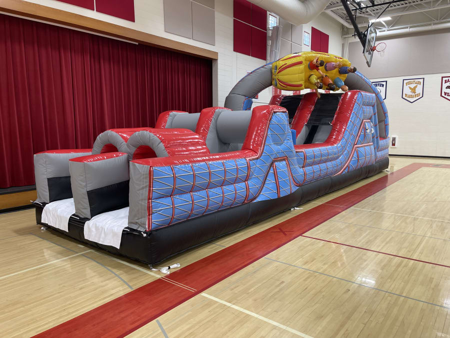 UNIT B is a mid size obstacle course starting with a challenge ladder climb into a slide, through inflatable pylons and squeeze obstacle ending with a crawl through tunnel to the exit.